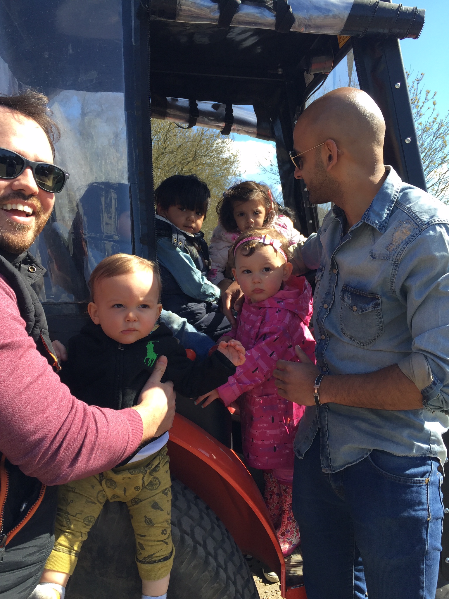 Some more storytelling and then off to the farm to see all the animals. The little ones loved pointing out the sheep and making the right sound to match. Then we had a group tractor ride! Round and round we went. After this we were taken to a place where the little ones could pet the hens and baby chicks. A fluffy rabbit was enjoying all the attention.