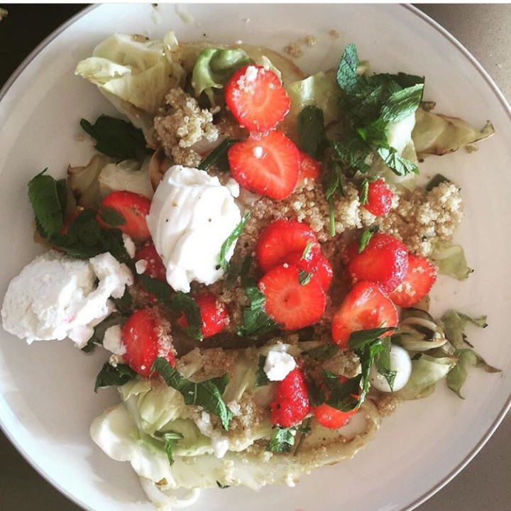 Charred cabbage, ricotta & strawberry salad.